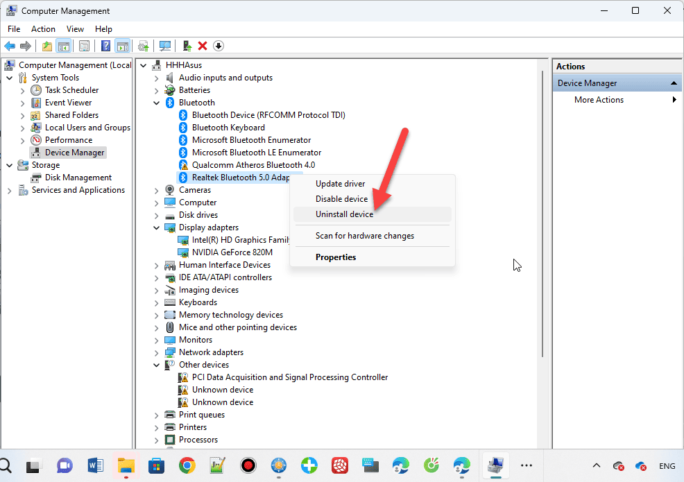 - Bước 1: Bấm phím Window và R, gõ “compmgmt.msc” -> sau đó GỠ THIẾT BỊ BLUETOOTH MẸ ra.