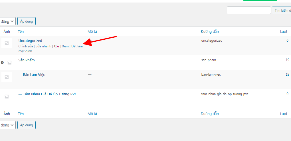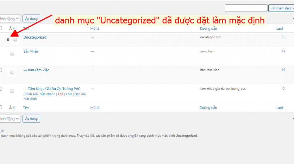 Chỉnh lại danh mục “Uncategorized” làm mặc định