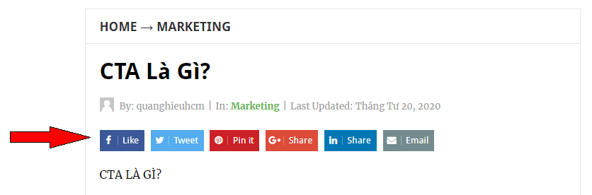 CTA được viết tắt bởi từ Call To Action , nói nôm là một lời gọi kêu hành động theo chủ ý nhằm có lợi cho tác giả ( đương nhiên không phải là có hại cho bạn ). Ví dụ, các CTA thường dễ thấy nhất là: